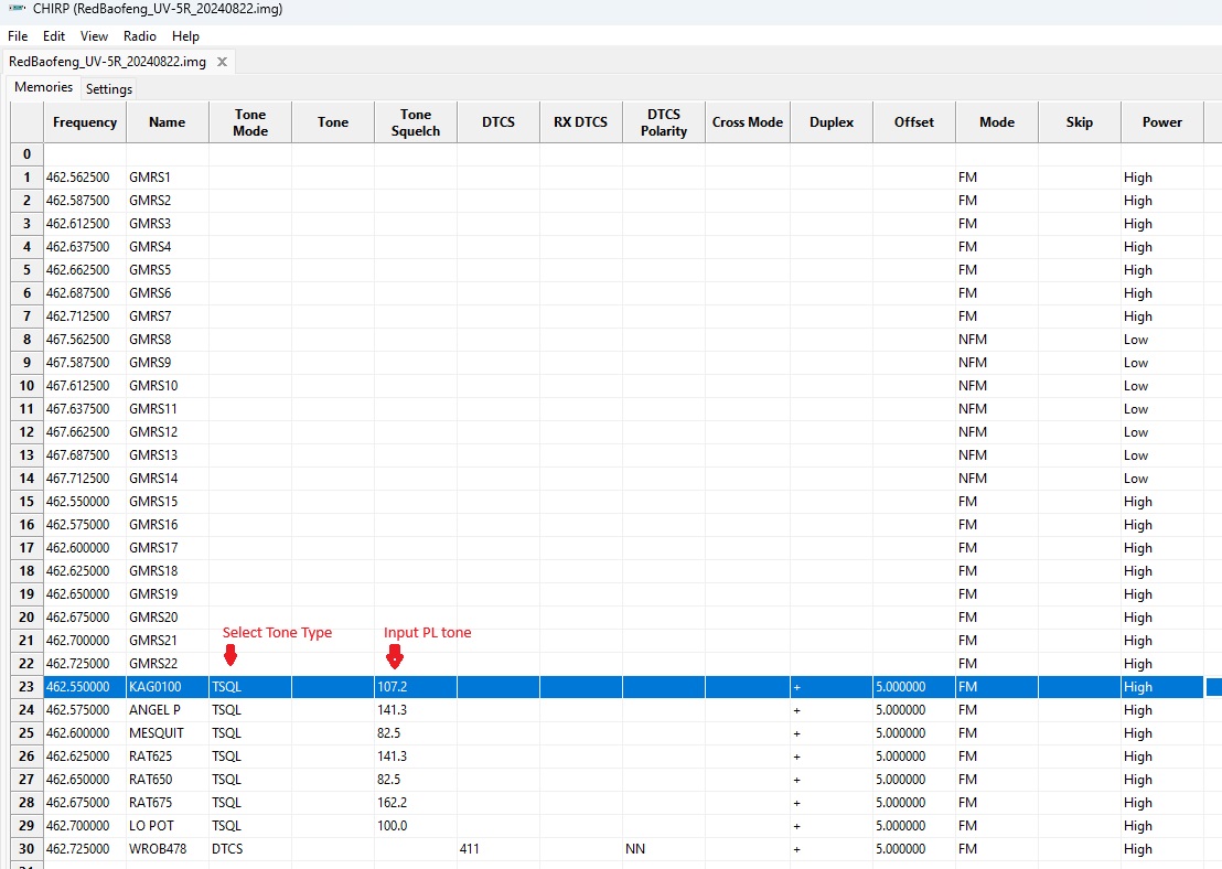 Does anyone know how to set pl tone on baofeng radio? or if you have used chirp before how do you set it? i can talk on my mobile not on my portables